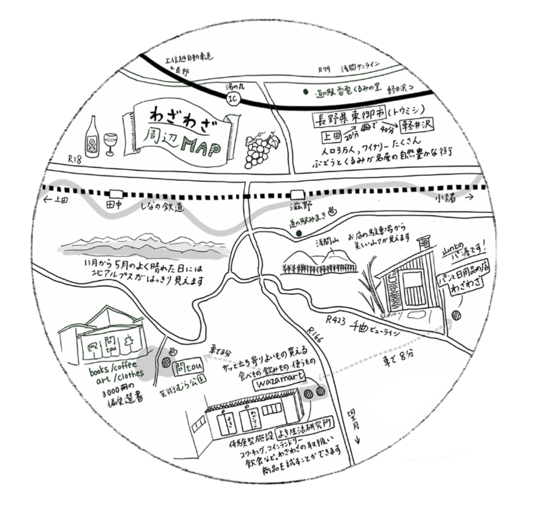 わざわざの拠点は、おおよそ人口3万人の長野県東御市。大自然が広がり、ブドウとくるみが名産品で、ワイナリーがたくさんある地域です。